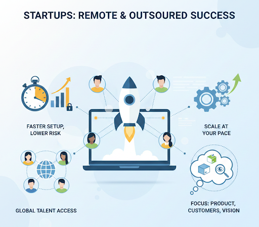 The startups that will define the next decade are not those with the biggest Series A rounds or the fanciest offices — they are those that deploy capital with ruthless efficiency, move faster than competitors, and access the world’s best talent regardless of location. Remote hiring and outsourcing are not cost-cutting tactics for startups. They are strategic superpowers that enable lean, fast, globally competitive companies to win.